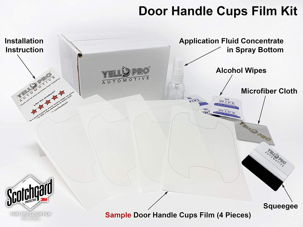 Our kit includes 4pcs computerized cut films that can be easily applied under the door handles. Detailed instructions have been included inside.