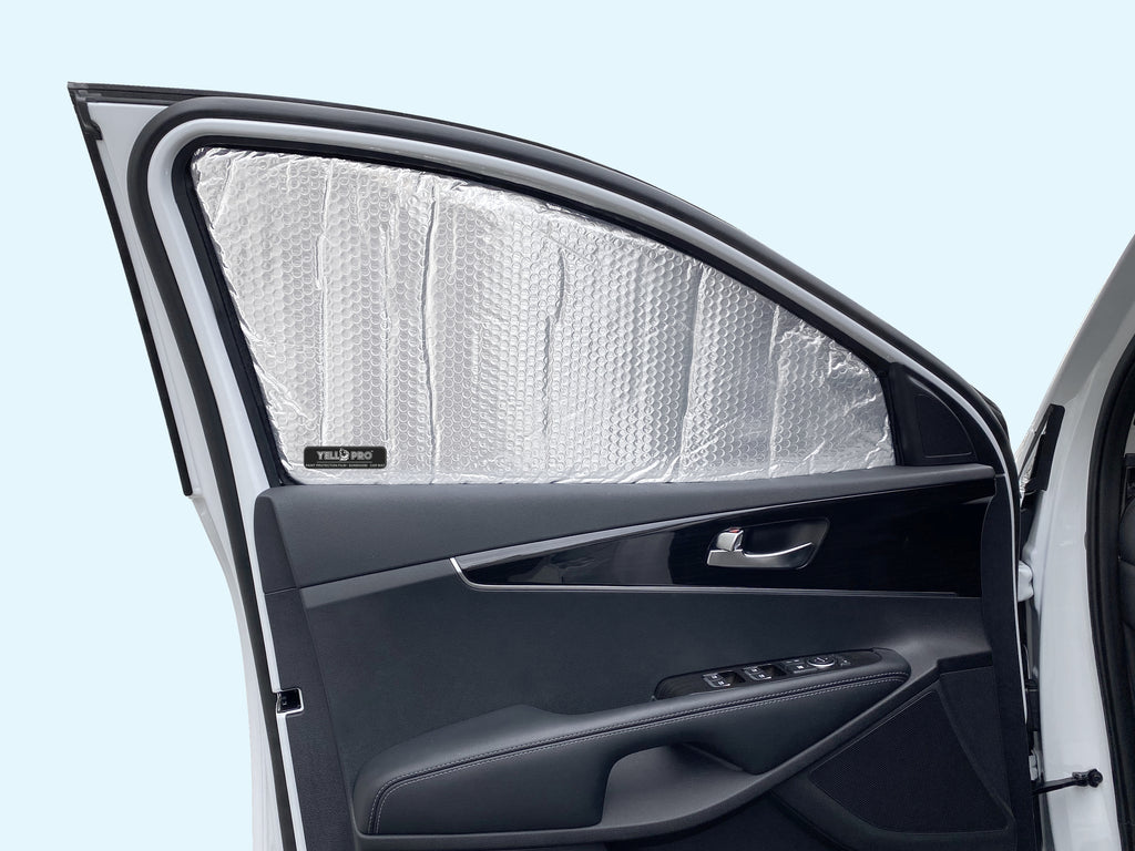 They are custom cut using the latest in computer-aided cutting technology. YelloPro Sunshades are reflective, insulating and custom fit for each car model's front seat side windows.