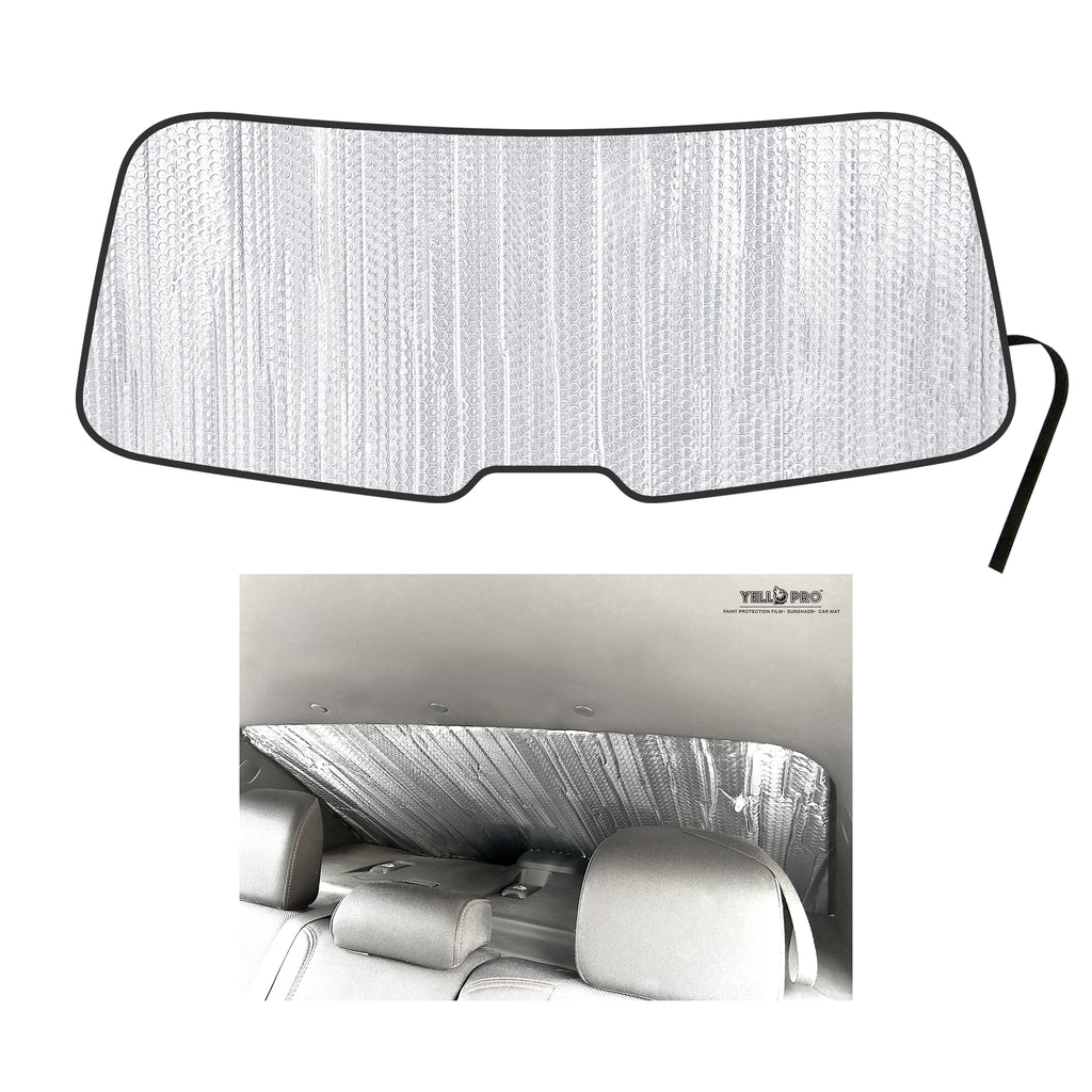 This sunshade is custom cut using the latest in computer-aided cutting technology. YelloPro Sunshades are reflective, insulating and custom fit for each car model's tailgate/rear windshield.