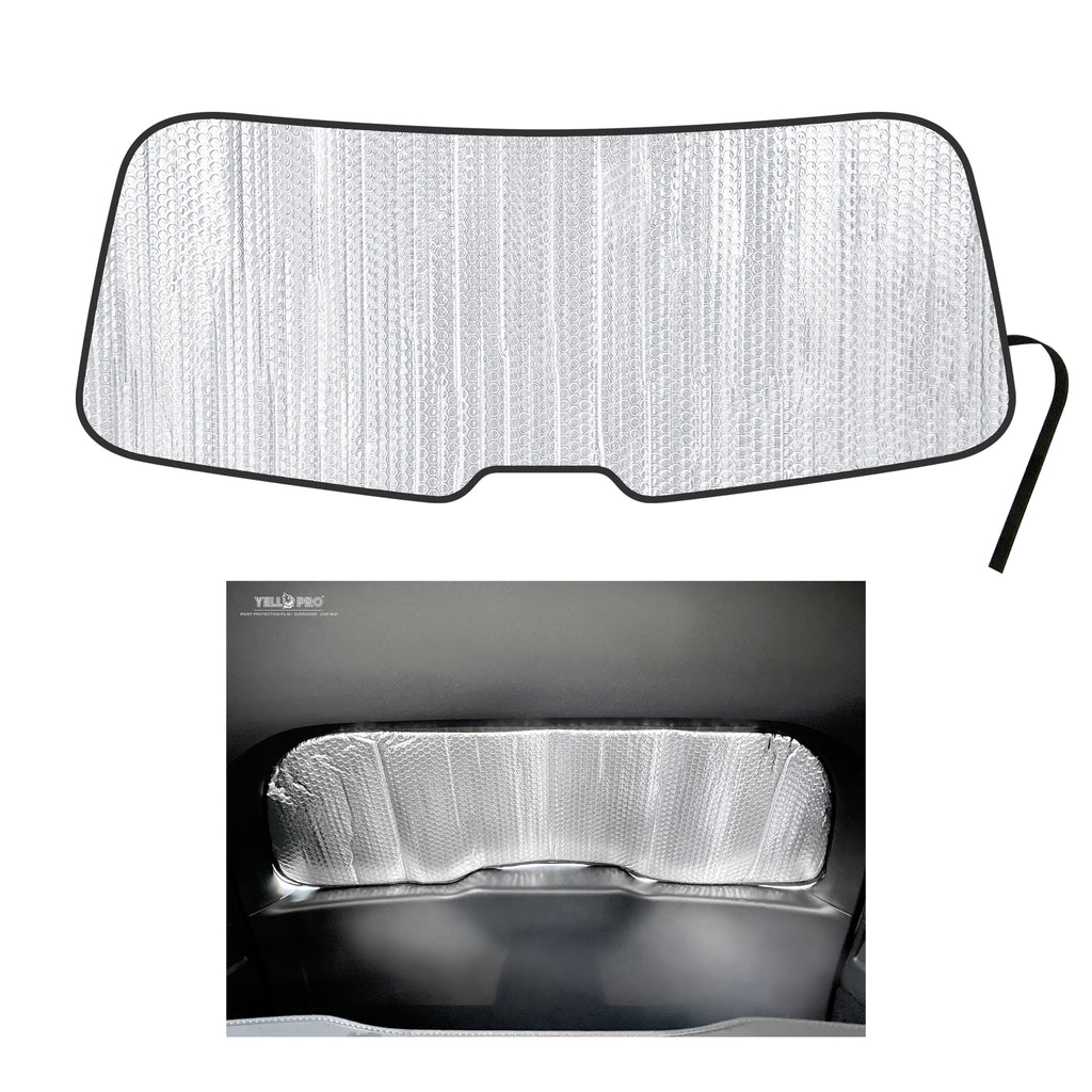This sunshade is custom cut using the latest in computer-aided cutting technology. YelloPro Sunshades are reflective, insulating and custom fit for each car model's tailgate/rear windshield.