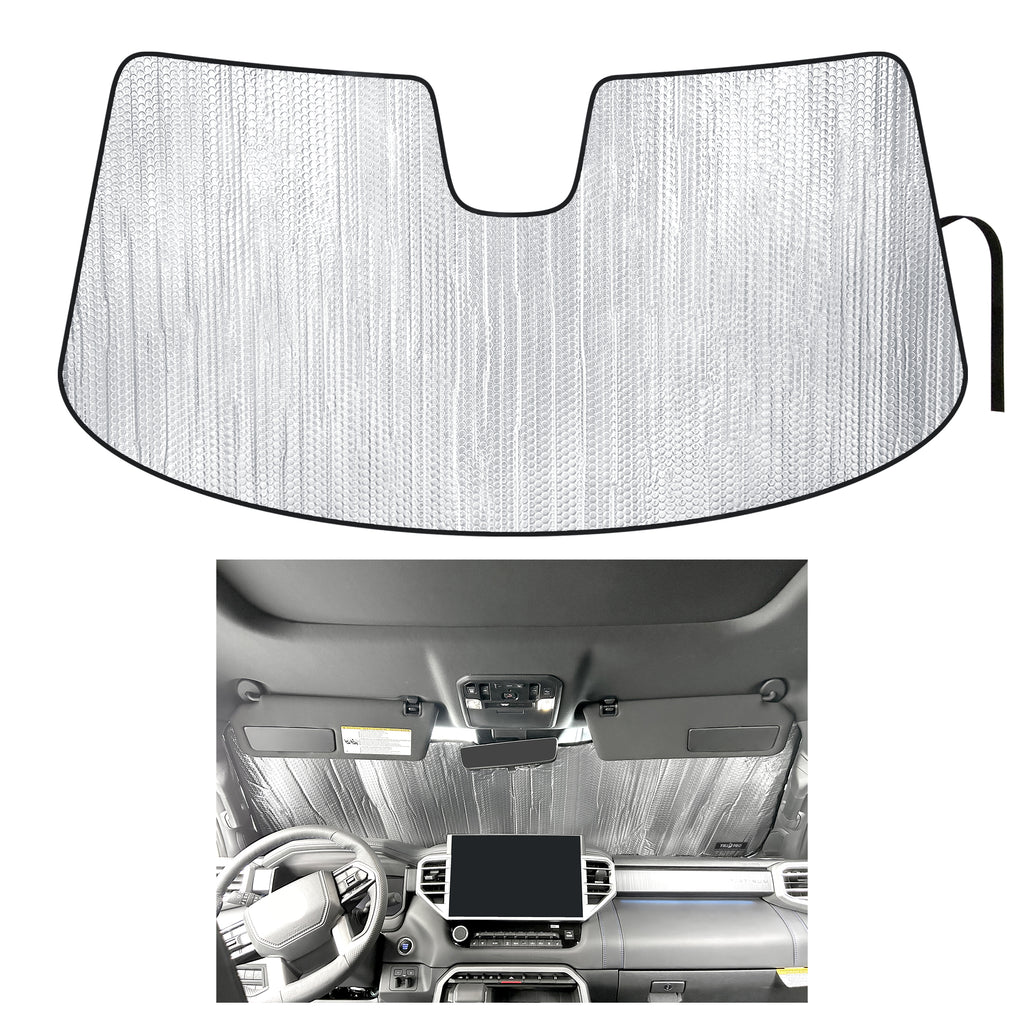 - Easy Installation: Unroll across the dash, bend the sunshade behind the rear-view mirror and flip the sun visors down. To store, simply roll up the sunshade and secure it with the attached velcro strap.