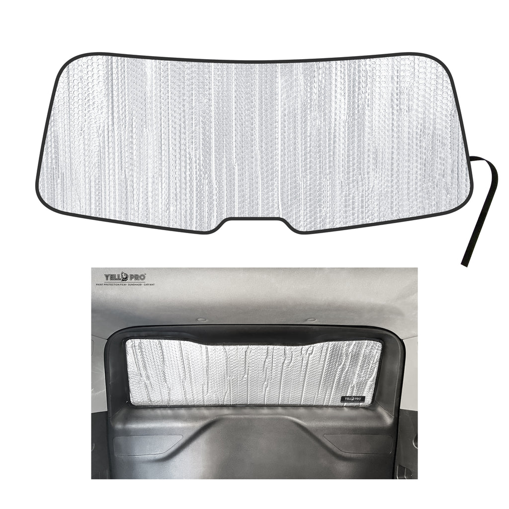 This sunshade is custom cut using the latest in computer-aided cutting technology. YelloPro Sunshades are reflective, insulating and custom fit for each car model's REAR/Tailgate window.